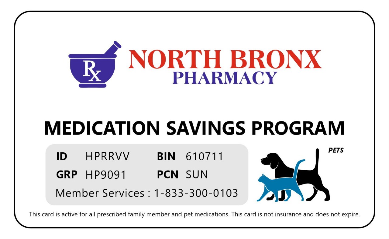 The North Bronx Pharmacy medication savings program provides discounts of up to 87% off retail prices at all major chains and most independent pharmacies nationwide.